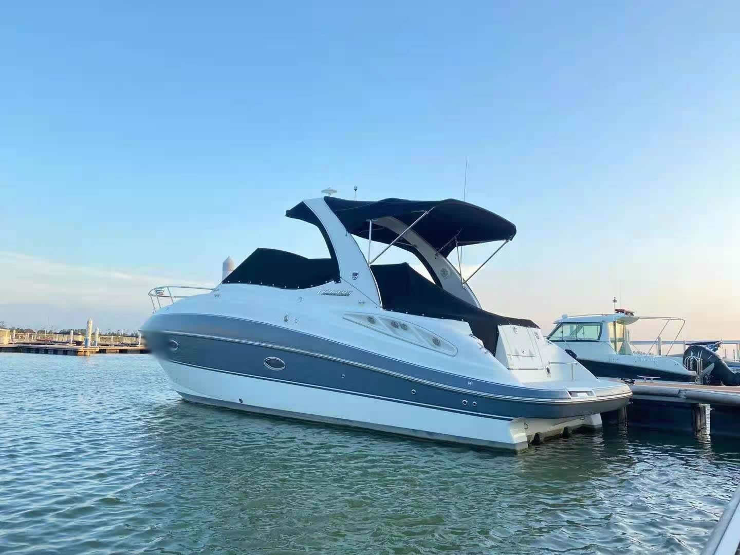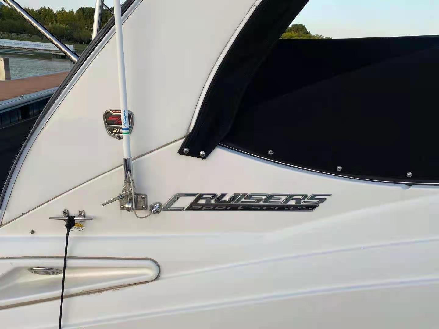二手好船转让,美国CRUISERS 315。2017年底出厂。双船内外汽油发动机250匹,11米,中国内河证书,9成新,发动机淡水使用50小时。实船照。随时试航。价格150万可议。